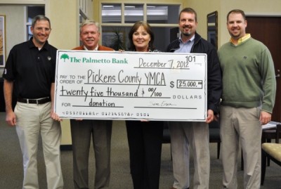 EASLEY — The Palmetto Bank has donated $25,000 to the Pickens County YMCA for capital development on future projects at the Easley YMCA.