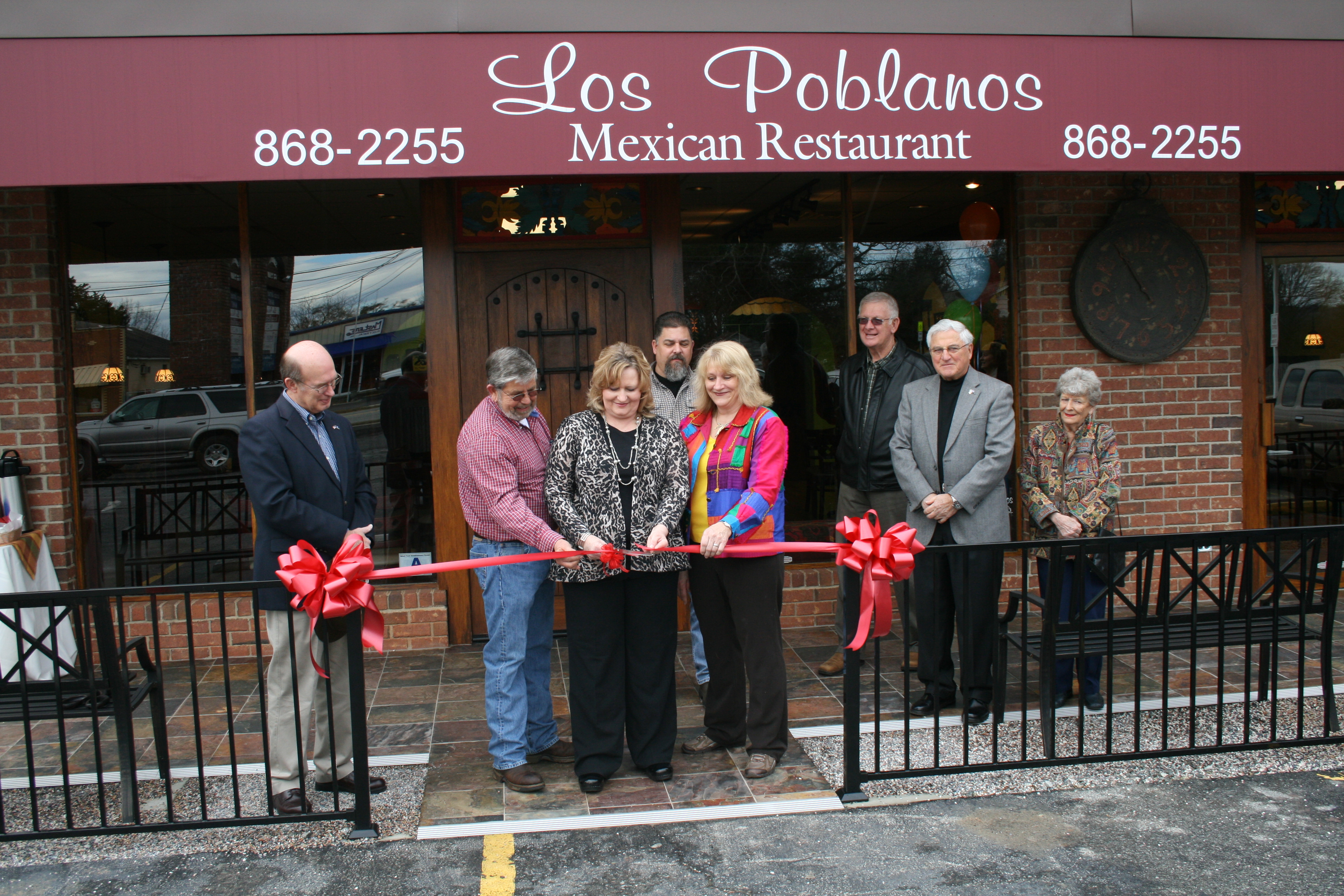 Los Poblanos held its ribbon cutting ceremony in Six Mile last Friday. Pictured are Elaine Porter (center) with her husband Dale and restaurant manager Cheryl Frazier, along with Sen. Larry Martin and Six Mile Mayor Roy Stoddard.