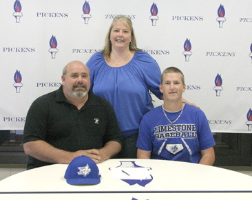 - Pictured alongside his dad David and mom Candace, Pickens High School’s Austin Lanier signed recently to continue his baseball career at Limestone College.