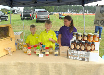 Brothers Harrison and Walker serve samples of Clark Bros. Honey with their cousin, Maddy, at the Dacusville Farm Show on Saturday.