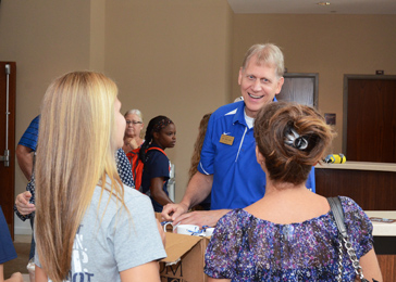 Southern Wesleyan University president Todd Voss greets students and their families during orientation Aug. 15 at the Central campus. Going into the 2015-’16 academic year, enrollment has seen a significant increase over last year.