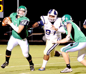 Easley quarterback Dalton Black scrambles away from pressure during the Green Wave’s home loss to Seneca on Friday night.