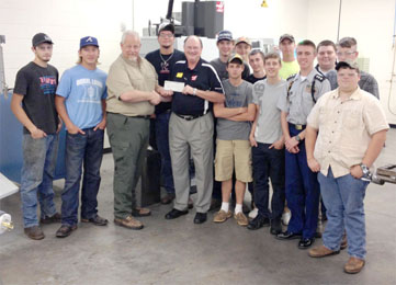 instructor Brian Aiken and students recently accepted a [cointent_lockedcontent]$10,000 check from the Gene Haas Foundation. Presenting the check was Haas Automation Incorporated’s Upstate South Carolina Representative, Gordon Eargle. The designated donation defrays program expenses and provides scholarships for students enrolling in post-secondary manufacturing-based training programs. The Gene Haas Foundation was created by Haas Automation, Incorporated, founder Gene Haas. Haas Automation, founded in 1983, is today recognized as the largest machine tool builder in the western world, manufacturing a complete line vertical and horizontal machining centers, CNC lathes and rotary products, and specialty machines.[/cointent_lockedcontent]