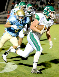 The teams’ defenses dominated from that point on. Disaster almost struck for the Wave late in the fourth quarter, but some great heads-up play from Hansen from the punter position saved the Wave. Facing fourth down and four from the Easley 38, the Wave called on the punting team. Back deep to kick, Hansen was shocked when the snap sailed over his head down inside the 10-yard line. Keeping his wits, Hansen scooped up the ball and somehow got his punt away, keeping the Lions from an easy score.