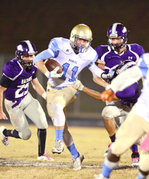 Liberty quarterback Austin Hughey breaks away for a long run against Pendleton on Friday night.