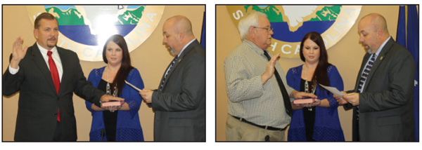 [cointent_lockedcontent]Clockwise from above, Liberty City Council incumbents Brian Petersen, Lavant Padgett and Josh Harrison, who all retained their seats in last month’s municipal elections, were sworn in at Monday night’s city council meeting. Holding the Bible was council member Lisa Hunter, and administering the oath was mayor Eric Boughman.[/cointent_lockedcontent]