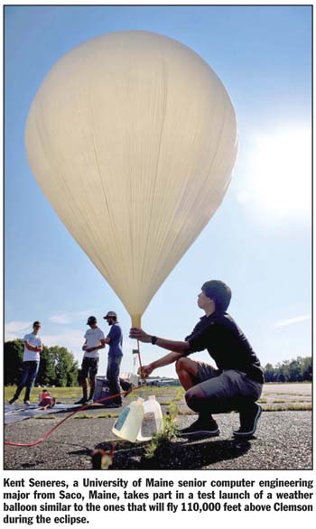 CLEMSON — The best view of next week’s solar eclipse over Clemson just might be from the stratosphere, 110,000 feet above campus, where two weather balloons from the University of Maine will float overhead and