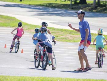 The campers got a taste of what it means to be a triathlete while going through bicycling and running drills. They also had a day to focus on swimming drills at