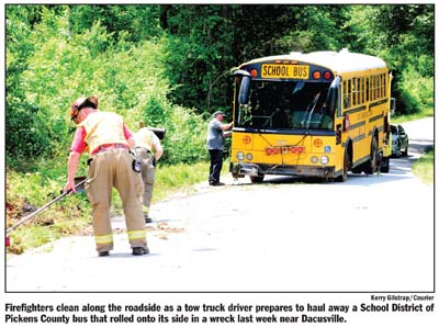 School district spokesman John Eby said the accident took place around 11:45 a.m. on Albatross Road near Jim Hunt Road in the Dacusville area. Eby said the special needs bus was carrying the driver, a bus companion and two students.