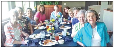 Lighthouse restaurant recently and adopted Liberty Library Lunch Bunch as its new name. Activities include luncheons at the library enjoying shared dishes and recipes, programs, picnics and outings to area restaurants, etc. The club meets the second Wednesday of each month at 11:30 a.m. at the Sarlin Library. All are invited to enjoy the food, fun and fellowship. For more information, contact the staff at the Sarlin Library in Liberty at (864) 843-5805. Pictured at the Lighthouse Restaurant in Seneca, from left, are Jean Thomas, Ellen Williams, Pat Martin, Tracy Morgan, Mel Avery, Lisa Carpenter, Ann Neuhs, Cheryl Foley, Faye Grooms and Shirley Bowman.