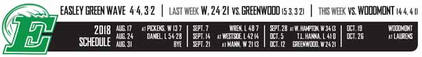 The game, which had all the feel of a playoff game with the first cooler weather of the season, was a classic. With the win, Easley clinched a playoff berth and now can look to bigger and better things with wins the next two weeks at home against Woodmont and on the road at Laurens.