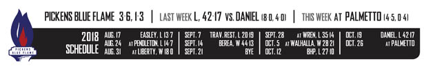 Smith knows his team will have to leave that loss in Pickens, as their last opportunity to squeeze into the Class 4A playoffs happens this week when they travel to Williamston to take on Palmetto. The Flame will need some help to take Region I-4A’s fourth spot in the postseason, but a head-to-head win over Walhalla earlier this month leaves the door open.