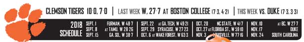 Clemson (10-0, 7-0 ACC) is undefeated through the first 10 games of the