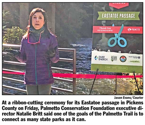 Britt said the next Palmetto Trail opening will be the section that connects Oconee State Park to Stumphouse Mountain Bike Park.