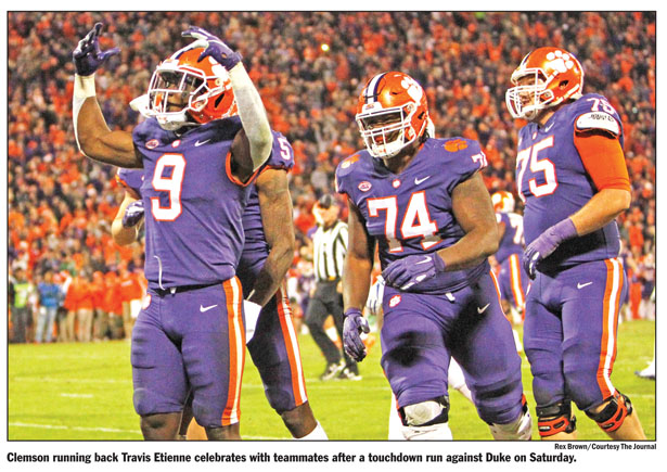 But the Tigers (11-0, 8-0 ACC) didn’t lead until early in the second quarter, when Tavien Feaster found the end zone for a two-yard score, and Duke continued to threaten with its efficient quarterback, Daniel Jones, keeping the game in reach.