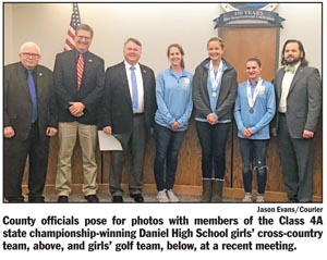 PICKENS — Pickens County Council members recognized the Daniel High School girls’ cross-country and girls’ golf teams for winning Class 4A state championships at a meeting earlier this month.