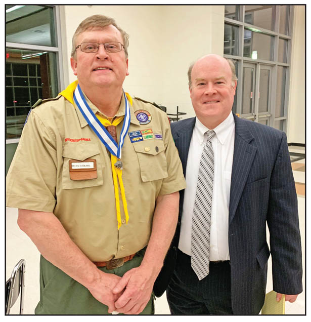 In a ceremony at the Pickens District BSA annual awards banquet, Bryan Dickard, left, was presented with the Silver Beaver award from the Blue Ridge Council. It is the highest award that can be given to an adult volunteer on the council level. Presenting the Silver Beaver was Mac Maclean, president of the Blue Ridge Council BSA, which covers nine counties in the Upstate of South Carolina.