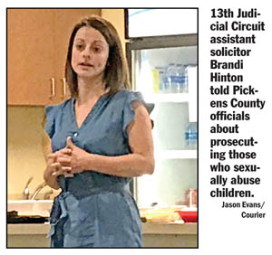 When Hinton began working in the 13th Judicial Circuit around eight years ago, Pickens County had one of the highest levels of child sexual abuse cases in the state per capita, she said.