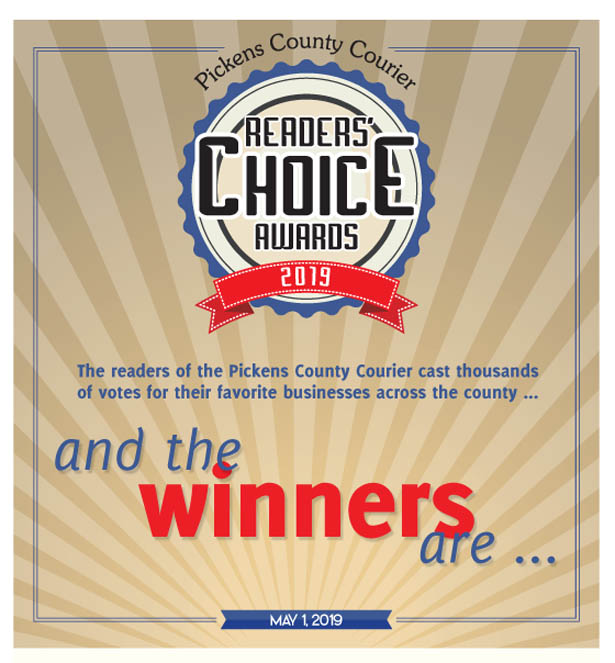 After readers cast thousands of ballots and members of the Courier family spent many hours hand-counting and tabulating the results, the time has finally come to officially unveil the businesses who were honored as the best at what they do in Pickens County in the first-ever Readers’ Choice Awards. Get this week’s printed copy of the Courier for a special keepsake section listing the winners and honorable mentions across more than 100 categories.