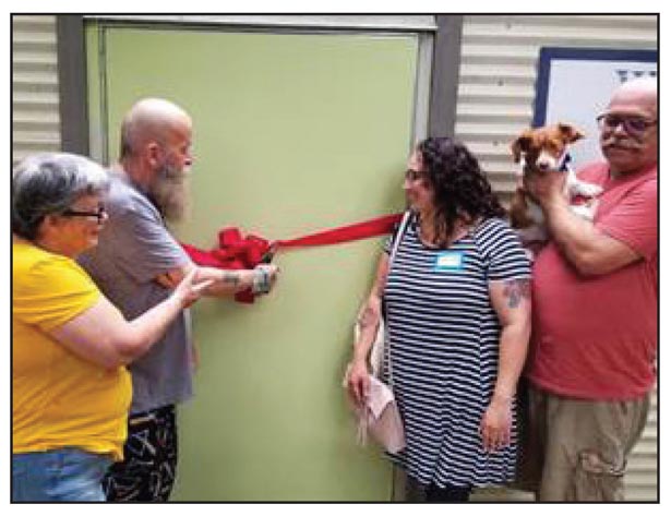 Bucky Williams-Hooker, the owner of Wool Over Your Eyes Knits by Bucky, cuts the ribbon at the grand opening of Pickens’ newest yarn, knitting and crochet shop. Williams-Hooker began knitting at age 11 as part of a physical therapy program to regain fine motor control of his left hand after a trauma. Since then, he paid part of his tuition for both his master’s degree and his Ph.D. degree by selling Icelandic sweaters made from pure Lopi wool, harvested from sheep found only in Iceland. Joining him in the picture, from left, are Ellen Wesson, Jessica and Joe Suggs. The shop, which also offers classes, is located at 502 Wolf Creek Road, just off Jameson Road, which is located next to BJ’s Gas and Food Market on S.C. Highway 183.