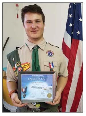 Boy Scout Tyler Sowell received his Eagle at a ceremony in December. Tyler earned his Eagle in Scout Troop 51 in Pickens and is the son of Chuck and Laurie Sowell. During Tyler’s scouting career he earned 29 merit badges, his Bronze Eagle Palm, Ordeal and Brotherhood for Order of the Arrow and served in many leadership roles in the troop. Tyler was very active and during his years in scouting had more than 109 camping nights, hiked more than 70 miles and cycled more than 129 miles in his years in Scouting. For his Eagle project, Tyler installed a bridge across a creek at Hagood Mill in Pickens to be used in conjunction with the disc golf course. Tyler is currently enrolled in Tri-County Technological College, where he is pursuing a career in welding.