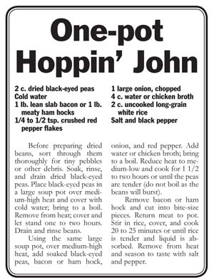 In the South, especially the Carolinas, collard greens, black-eyed peas and rice are universally thought to be most important for New Year’s dishes.