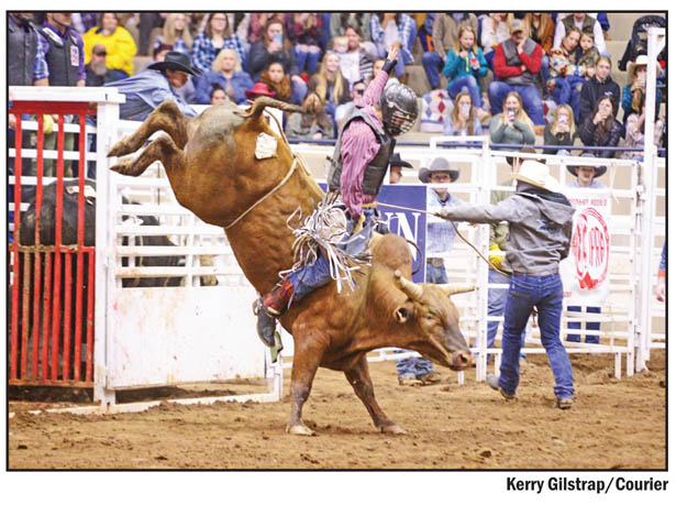 The T. Ed Garrison Arena hosted the Clemson IPRA World Championship Rodeo last Friday and Saturday, with great attendance for both events. Above, Kameron Merck of Easley rides a bull on Saturday.