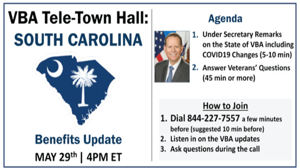STATE — Dr. Paul R. Lawrence, the Under Secretary for Benefits, Veterans Benefits Administration at the Department of Veteran Affairs, will be conducting an hourlong Tele-Townhall with South Carolina vets at 4 p.m. Friday.