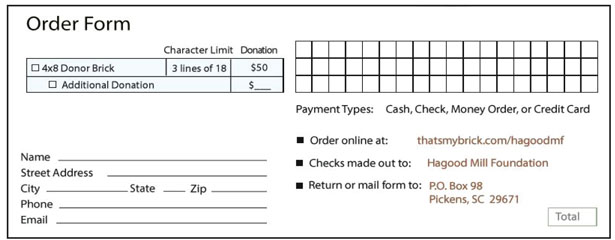 The Hagood Mill foundation has partnered with “That’s My Brick” to raise money through the sale
