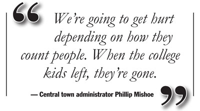“We’re going to get hurt depending on how they count people,” Central town administrator Phillip Mishoe said. “When the college kids left, they’re gone. We’ve put fliers on trashcans, and if we can get the permanent residents