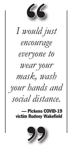 The South Carolina Department of Health and Environmental Control reported the confirmed COVID-19 death of a single elderly Pickens County resident last Tuesday, Thursday and Saturday, while it reported the probable virus-related death of an elderly county resident on Wednesday and the deaths of both an elderly