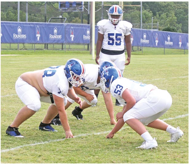 Batt at practice last week. At left, a group of Pickens linemen wait for a signal at practice on Monday. All four county teams will