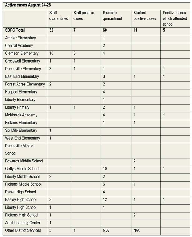 COUNTY — Dozens of School District of Pickens County employees and students were in quarantine during the first week of the school year last week, according to district officials.