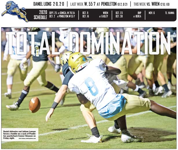 lopsided win over Seneca in the season opener set a high bar for the Lions. The follow-up, a 55-7 drumming of Pendleton at Cunningham Stadium on Friday night, showed the Lions may be among the top teams in Class 3A.