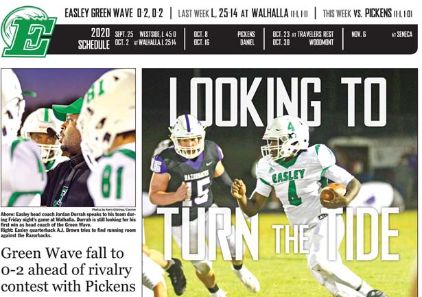 WALHALLA — Football is a game of momentum, and Easley hopes the momentum gained late in Friday night’s game at Walhalla will carry over to the rest of the season.