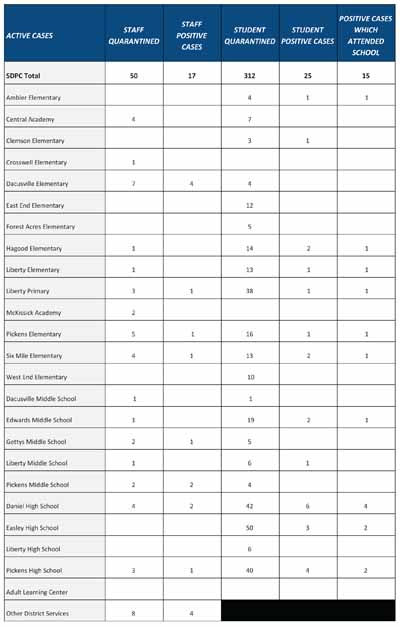 COUNTY — As 2.5 percent of all staff members and students participating in in-person instruction across the district were quarantined, more than 40 people in the School District of Pickens County