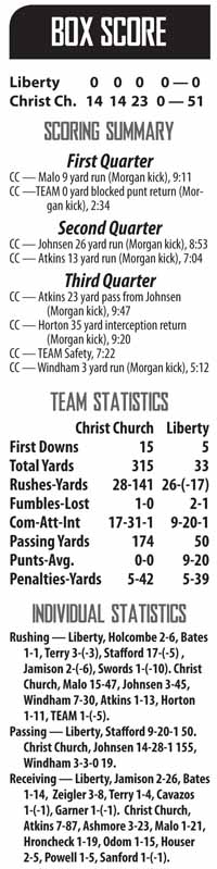 LIBERTY — Coming off of a nail-biting loss to Ninety Six in its season opener, Liberty had a chance for redemption against the Christ Church Cavaliers on Friday night.