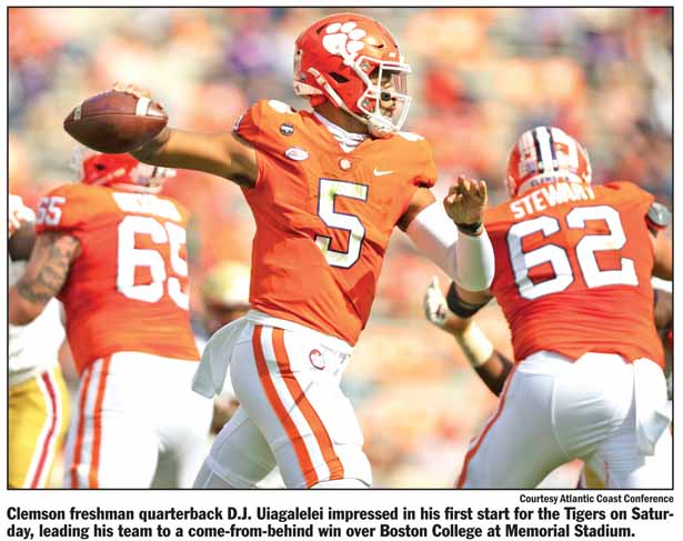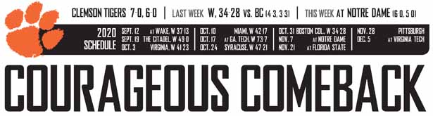 CLEMSON — With Trevor Lawrence out after testing positive for COVID-19 earlier in the week, the Clemson football team came back from an 18-point deficit in