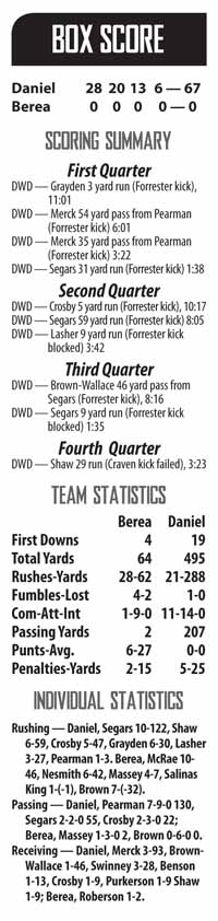Path, the Daniel High School football team didn’t seem to have much to play for against Berea on Friday night.