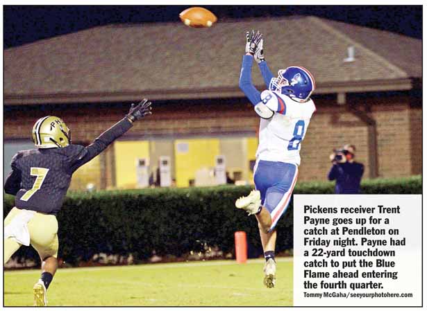 quarterback Drew Campbell on Friday night, the Pickens Blue Flame had the odds against them on Friday night.