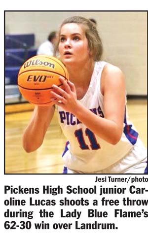 Lady Cardinals, 62-30, in a non-region game played in the friendly confines of Coach Peggy Harden Anthony Gymnasium on the Pickens High campus. Pickens followed up that game on Dec. 4 with a 71-32 non-region road victory over Liberty. The Lady Blue Flame now stand at 2-0 on the season.