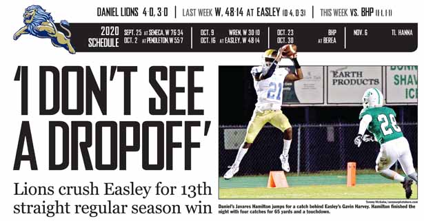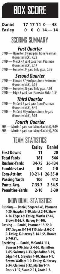 EASLEY — Coming off a season-defining win against defending Class 4A state champion Wren the previous week, the third-ranked Daniel