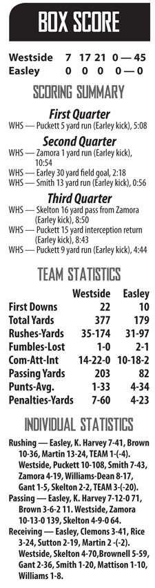 have liked Friday night, as the visiting Westside Rams had a scoring outburst that turned a close game into a 45-0 win in the teams’ season opener and Region I-4A opener.