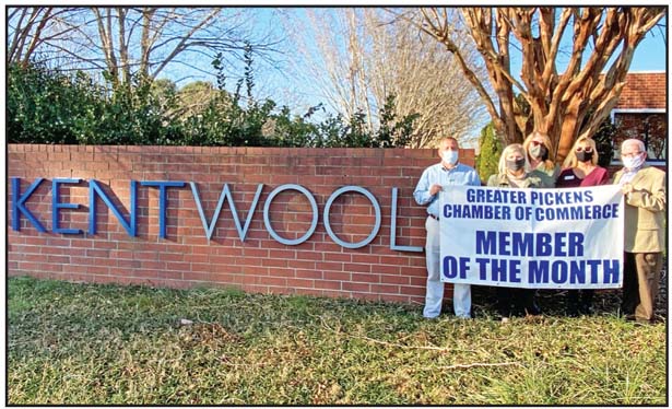 Kentwool has been named the Greater Pickens Chamber of Commerce December Member of the Month. Kentwool has gone from a great idea to making the world’s best sock. All Kentwool products are infused with a proprietary blend of super fine Merino wool yarn and combined with other premium natural and high-tech fibers. Kentwool’s integrated technology process creates an optimal micro-climate that promotes wicking and comfort while reducing friction, abrasion and muscle fatigue. Kentwool is located at 671 Runnymede Road in Pickens. Visit kentwool.com to order. Pictured are Kentwool Yarn president Keith Horn and Kentwool Performance president Lauren Luneckas, along with chamber board of directors members Liza Holder, Debbie Gravely and Bryan Owens.