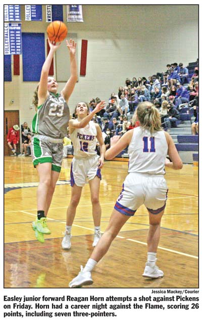PICKENS — Easley sophomore forward Reagan Horn just hoped to match her previous season high when the Green Wave tipped off against rival Pickens on Friday night.