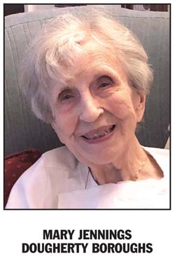 PICKENS — Mary Jennings Dougherty Boroughs, widow of Ralph Zeigler Boroughs, died on Tuesday, Feb. 2, 2021.