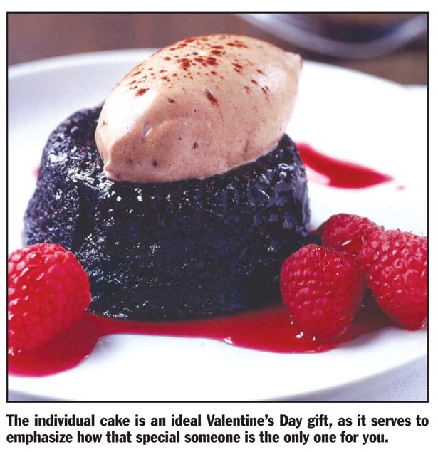 But chocolate desserts can be more than merely decadent. In fact, this recipe for “Pasticcio di Cioccolato con Lampone (Individual Chocolate Cakes With Fresh Raspberries)” from Michael White and Joanna Pruess’ “Fiamma: The Essence of Contemporary Italian Cooking” (Wiley) is both decadent and, thanks to the fresh raspberries, refreshing. The individual cake is an ideal Valentine’s Day gift, as it serves to emphasize how that special someone is the only one for you.