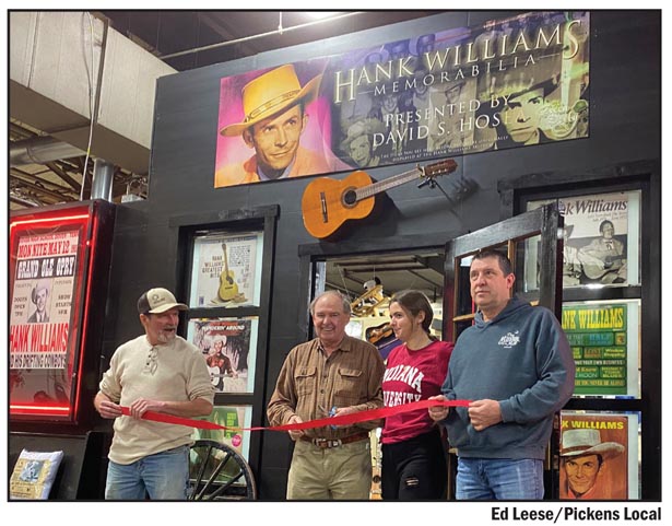 The Market at the Mill in Pickens held a formal grand opening of its newest attraction, the Hank Williams Museum, last Saturday. The new museum will take you back in time as you enjoy lots of country music legend Hank Williams memorabilia. The new museum will be a treat to anyone who loves the historic golden days of country music. The Market at the Mill offers great shopping and attractions. The market is located in the old Ryobi building in Pickens. Pictured above, from left, are Pat Mulkey, Market at the Mill owner David Hosea, Taylor Hosea and Market at the Mill facility manager Barry Crawford.