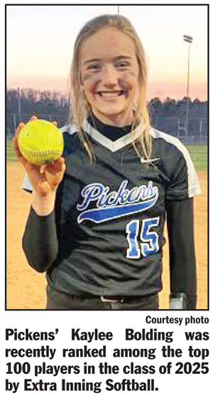 Bolding, an eighth-grader who plays varsity softball for Pickens, was ranked the 31st best player in her class, according to the website’s list.