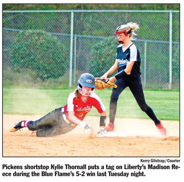 PICKENS — The Pickens Blue Flame softball team opened last week with consecutive matchups against county foe Liberty, and despite a couple really close contest, the Blue Flame ended up taking both matchups.